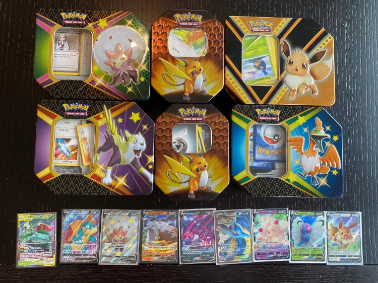 Great lot of Pokemon tins, sleeves, singles and coins.